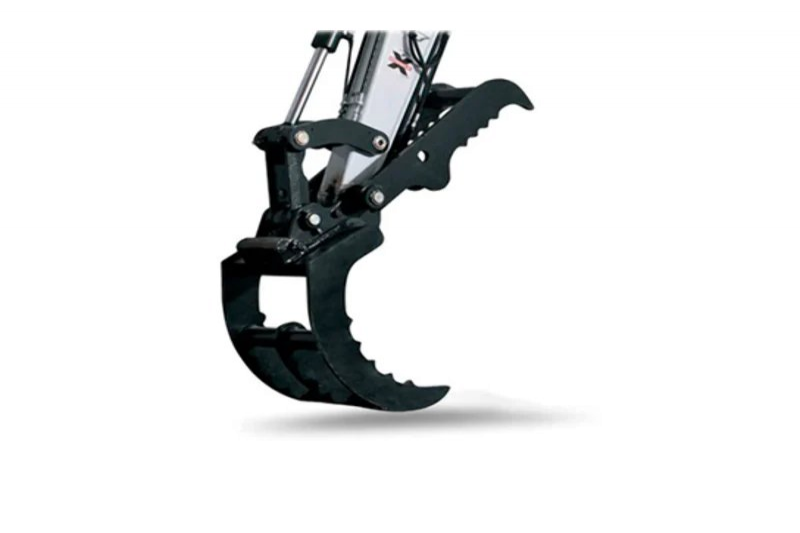 Key Features: Powerful Grip: The three-tine design provides a strong bite, allowing operators to lift and move large, hard-to-manage materials with ease. Versatility: Beyond its primary function, the grapple can be used as a rake or combined with a hydraulic clamp to enhance its versatility on various job sites. X-Change™ Attachment Mounting System: This system facilitates quick and easy attachment and detachment of the grapple, reducing downtime and increasing productivity. Operating Weight: 225lb. Width: 20.5". 3 Teeth. Grapple Width: 20.5". Tine Radius: 33" Tine. Thicknes: 0.8".